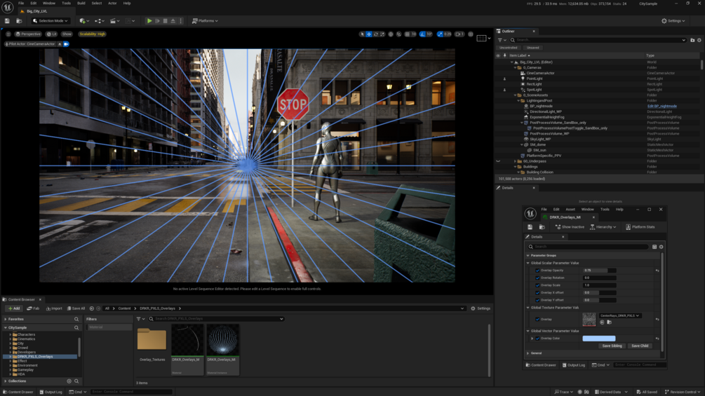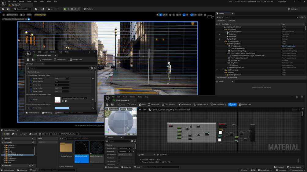 The sample environment in this listing is derived from Epic Games' City Sample.